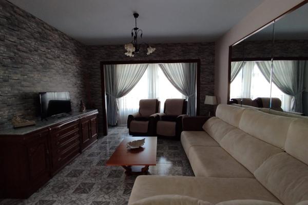 Das Grundstück entspricht einem Haus mit einer komfortablen und funktionalen Verteilung. Beim Betreten finden wir einen gemütlichen Flur, der zu einem geräumigen Wohnzimmer und Esszimmer führt – perfekt für alltägliche und familiäre Zusammenkünfte. Das Haus verfügt über eine separate Küche mit Waschküche, die Praktikabilität und zusätzlichen Stauraum bietet.